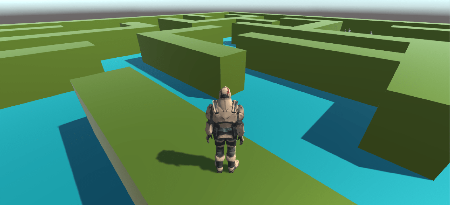 - Chasing – The agent’s target is set on the player’s transform and is updated every time the coroutine restarts by checking the custom view angle and raycasting for any obstructing geometry. When the agent reaches a specific distance close enough to the player’s transform, it will transition into the “Attack” phase. The player can outmaneuver the agent if moving out of range where the agent’s visibility distance extends to or moving behind geometry where the agent is unable to successfully track movement. When the agent loses sight of the player, it will transition into the “Searching” phase.